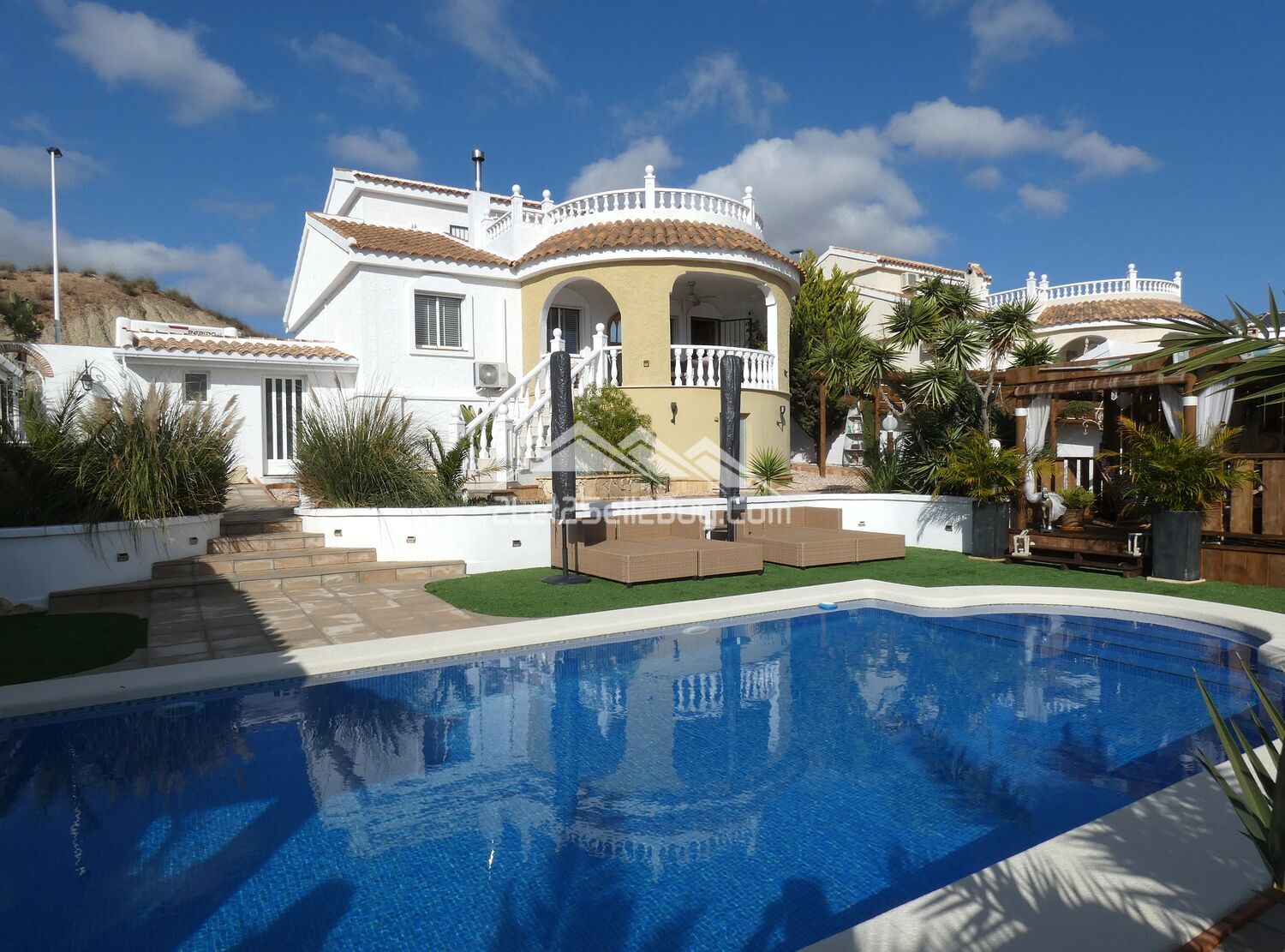 A beautifully presented Neptuno Deluxe Style Villa, 3 bed, 3 bath, 660m2 plot, gated entrances, off-road parking, courtyard, terrace, private 8x4 pool, summer kitchen, outdoor bar, oil C.H, log burner, dual A.C, ceiling fans, roof-top solarium, stunning views, totally reformed, double glazing throughout. Being sold part furnished.
