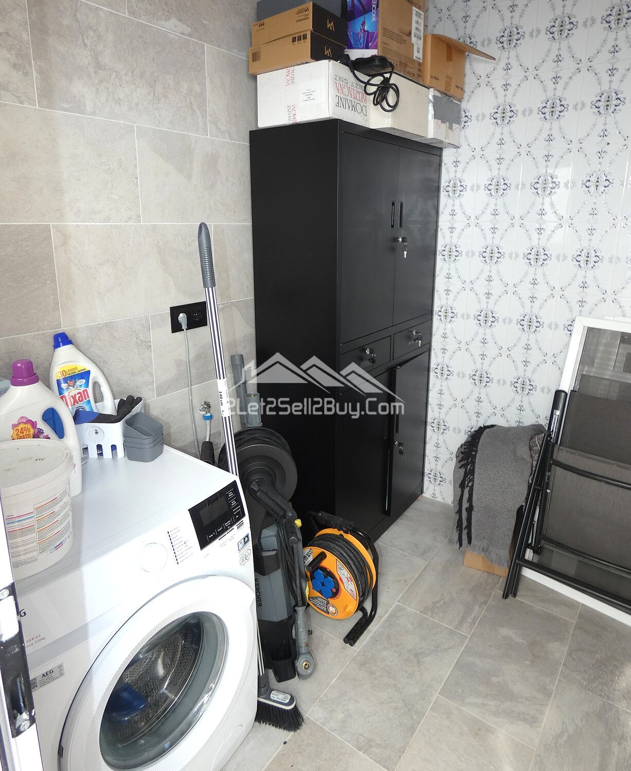 The utility room is fully tiled and has plumbing for a washing machine. With power and lighting this is a versatile space for storage. The bathroom is fully tiled in a classic style and incorporates a WC, pedestal sink, wall mounted cabinet, lighting, and a corner shower tray with wall mounted shower. A second door leads to an underbuild which houses the 2,000Litre water tank, the central heating boiler and the oil storage tank. Low level steps lead to the outdoor kitchen and bar.