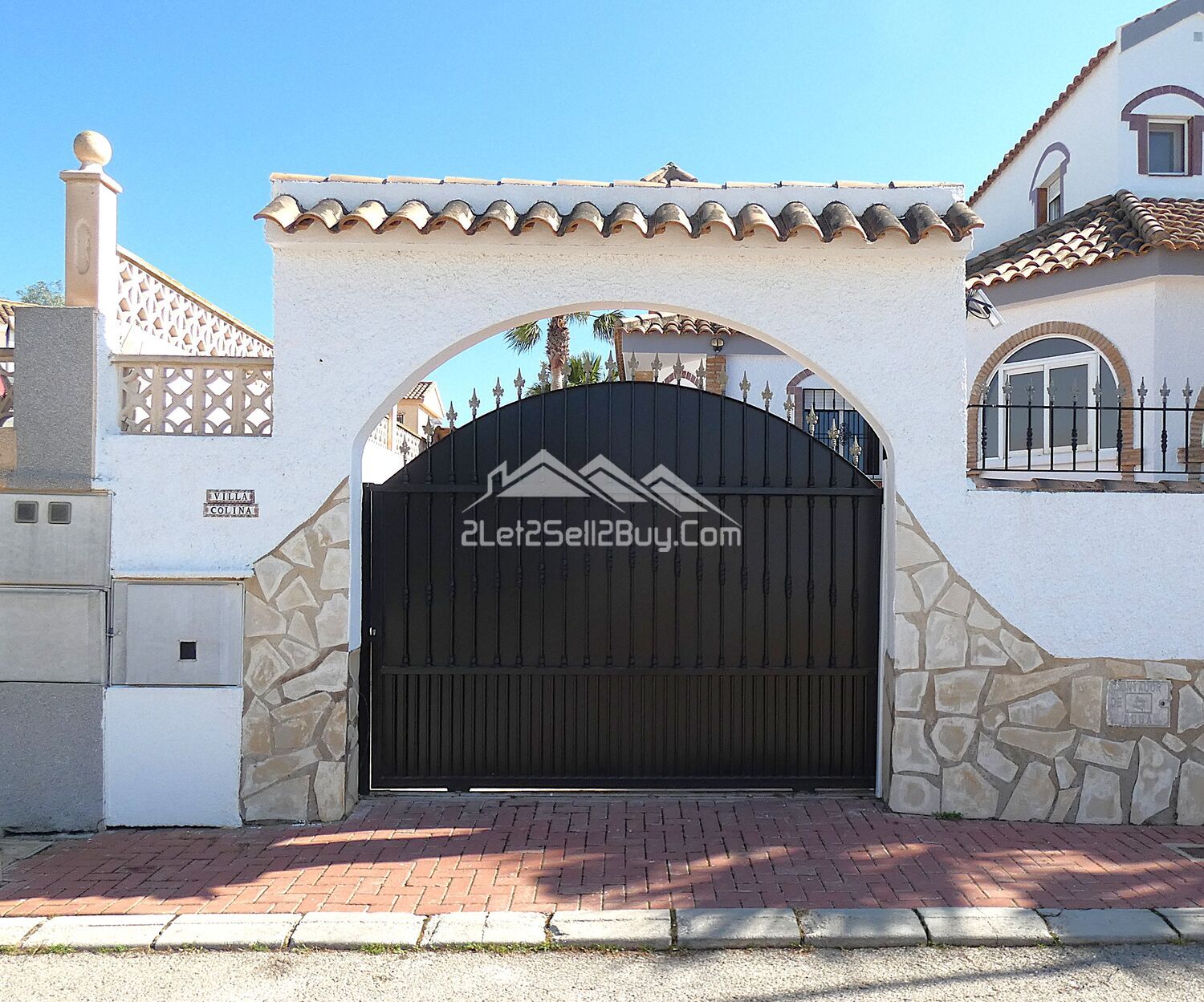 Vehicle access to the property is via an electric ornamental metal gate, opening onto a generously sized off-road parking area that is fully paved for ease of maintenance. The parking area offers convenient and practical access, with the benefit of a carport and with raised walls for privacy.
