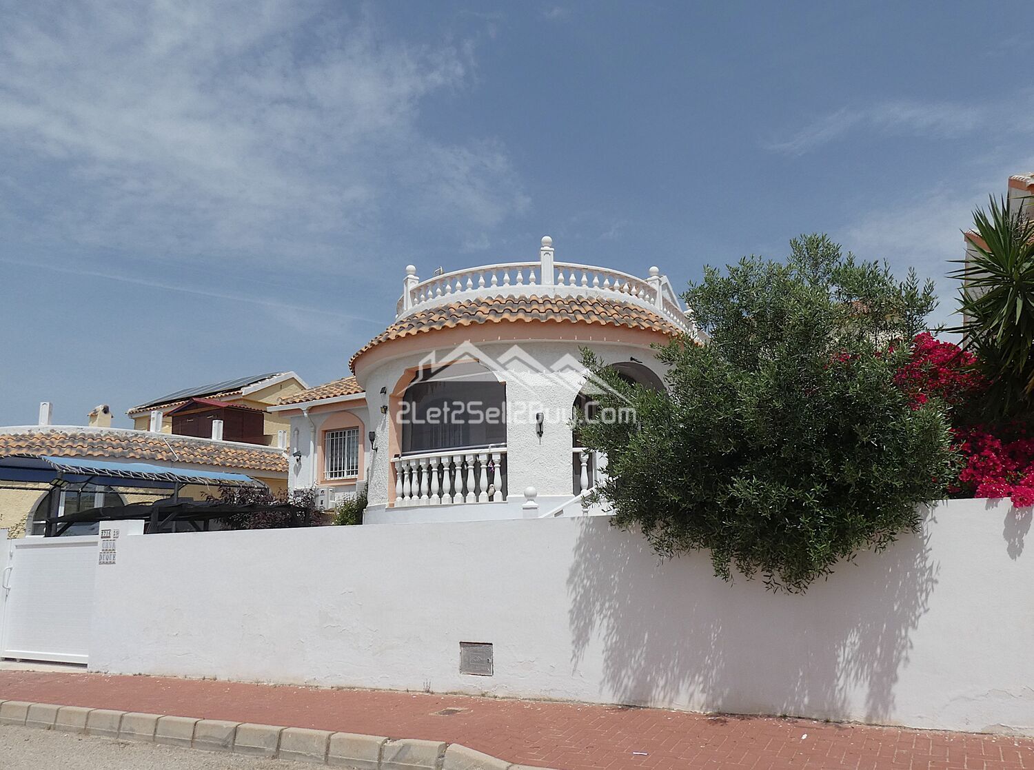 Access to the property is provided via a large, modern sliding metal gate, opening onto a low maintenance, off-road parking area, suitable for one vehicle. Marble stairs, with a decorative balustrade and handrail lead up to the front terrace.