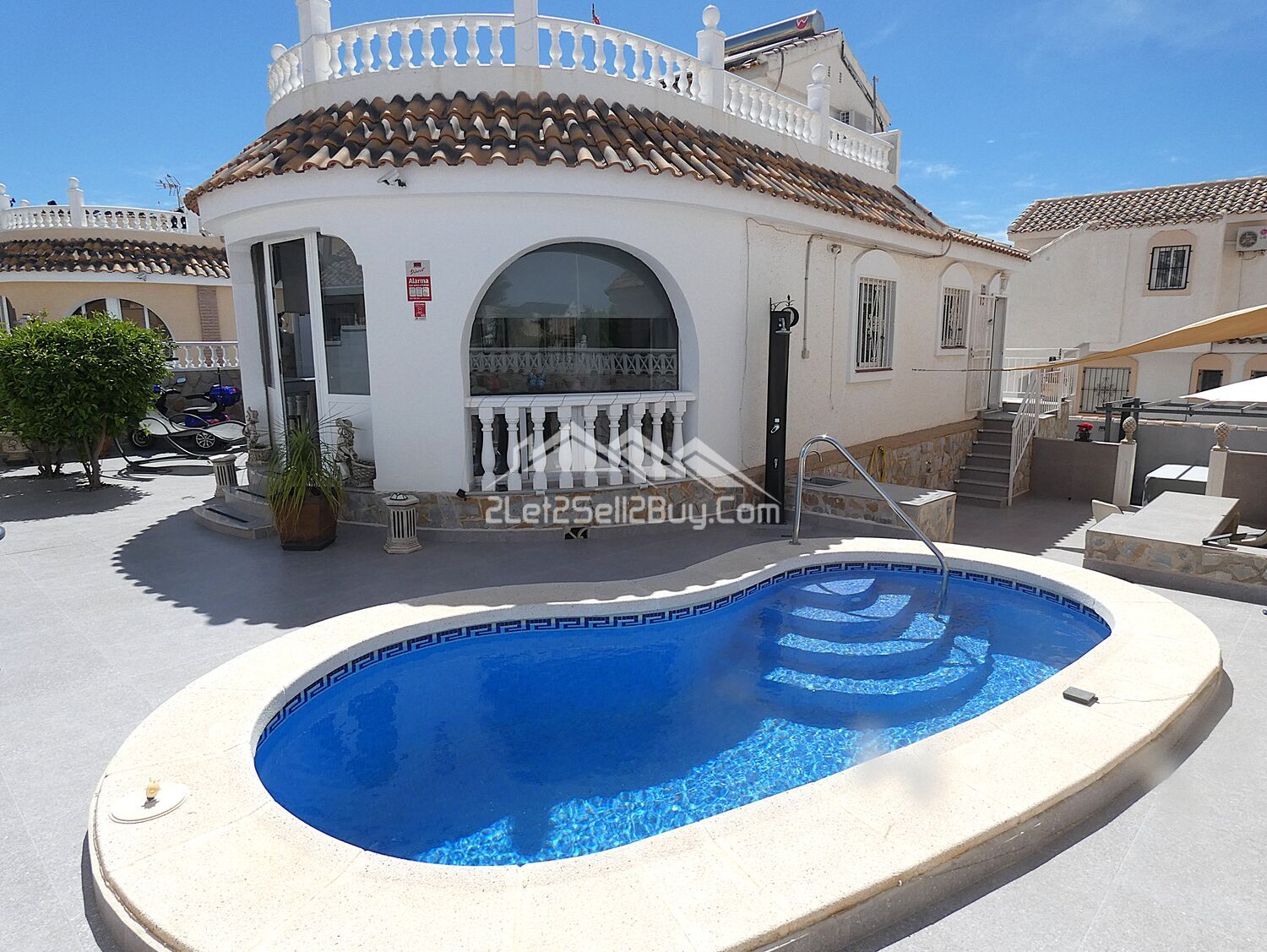 An immaculately presented Neptuno Deluxe Style Villa, 280m2 plot, 3 bed 3 bath. Glazed terrace, dual A.C, pellet burner, ceiling fans, solar electric, private pool, hot tub, summer kitchen, under build for storage, solarium, great views. Being sold part furnished.